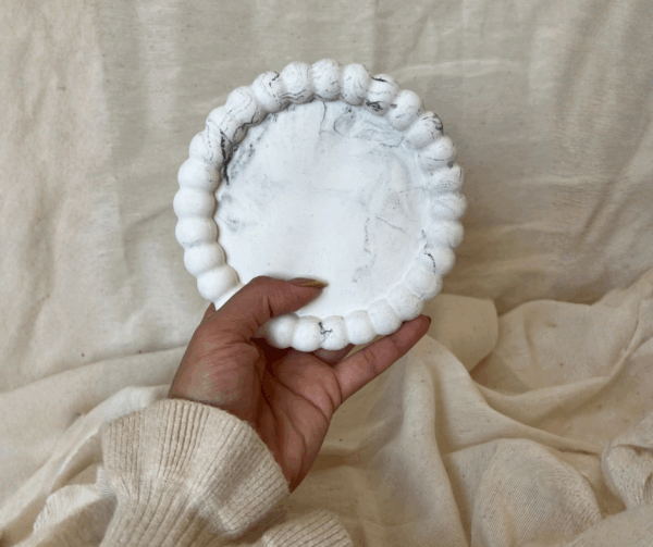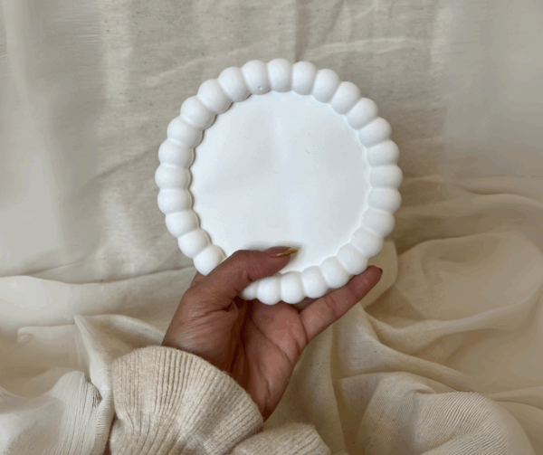 Bandeja artesanal de yeso y cemento, pensada para acompañar tus velas, hornitos o simplemente como objeto decorati