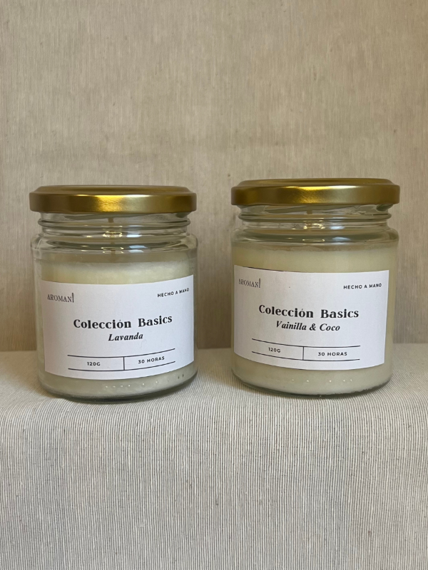 Vela hecha con cera de soja 100% natural, son sustentables y biodegradables. Envase reutilizable.