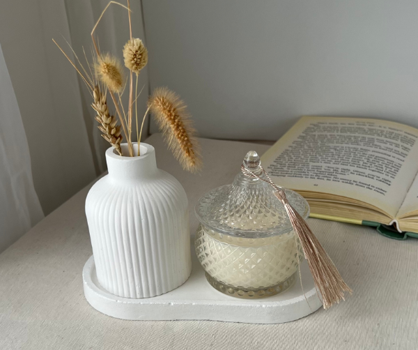 Vela hecha con cera de soja 100% natural, son sostenibles y biodegradables. Envase de vidrio reutilizable.