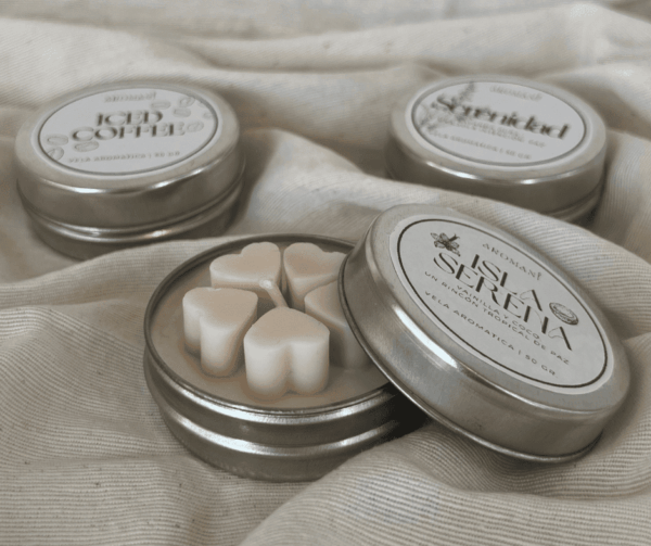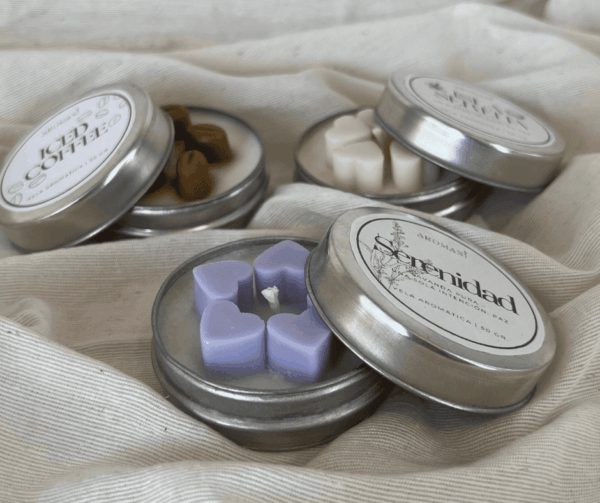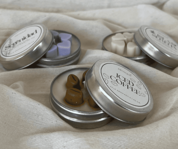 Vela hecha con cera de soja 100% natural, son sostenibles y biodegradables.