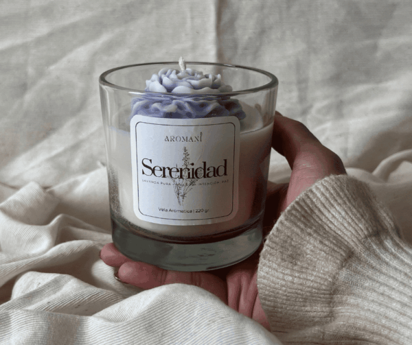 Vela hecha con cera de soja 100% natural, son sostenibles y biodegradables. Envase de vidrio reutilizable.